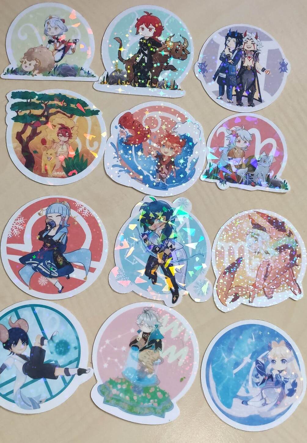 Lot de 12 stickers genshin impact, chaque personnage représente son signe du zodiaque.